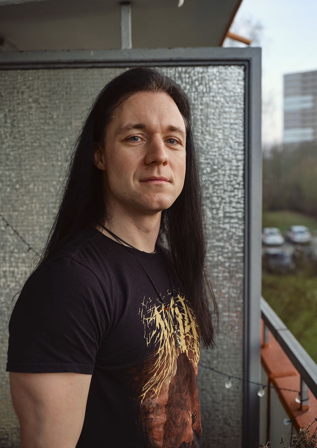 Pfarrer, Lehrer und Metal-Band-Frontmann: Markus Neher auf seinem Balkon in Erlangen. (Bild: André Kirsch)