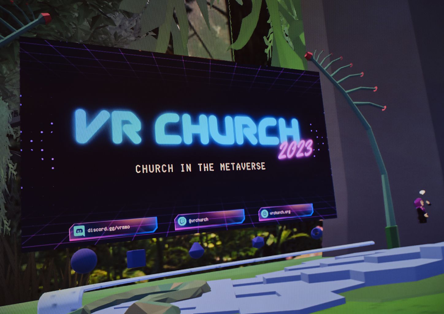 Der Metaverse-Pfarrer predigt in einem Wald. Genauer auf einer Lichtung, umgeben von riesigen Bäumen und dichtem Gebüsch. Kein Vogel zwitschert, kein Blatt raschelt, kein Wind weht. Alles ist künstlich – eine Landschaft aus Tausenden von Pixeln.