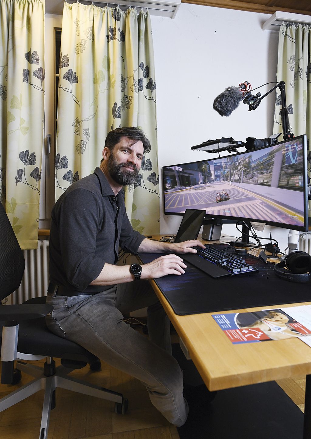 Genauso beeindruckend ist der ultrabreite und gekrümmte Bildschirm, vor den er sich nun hinsetzt, um in die Welt von «Cyber Punk 2077» einzutauchen. In diesem Computer-spiel muss sich Gray in einer postapokalyptischen Gesellschaft zurechtfinden und als weibliche Spielfigur «V» Aufgaben lösen.