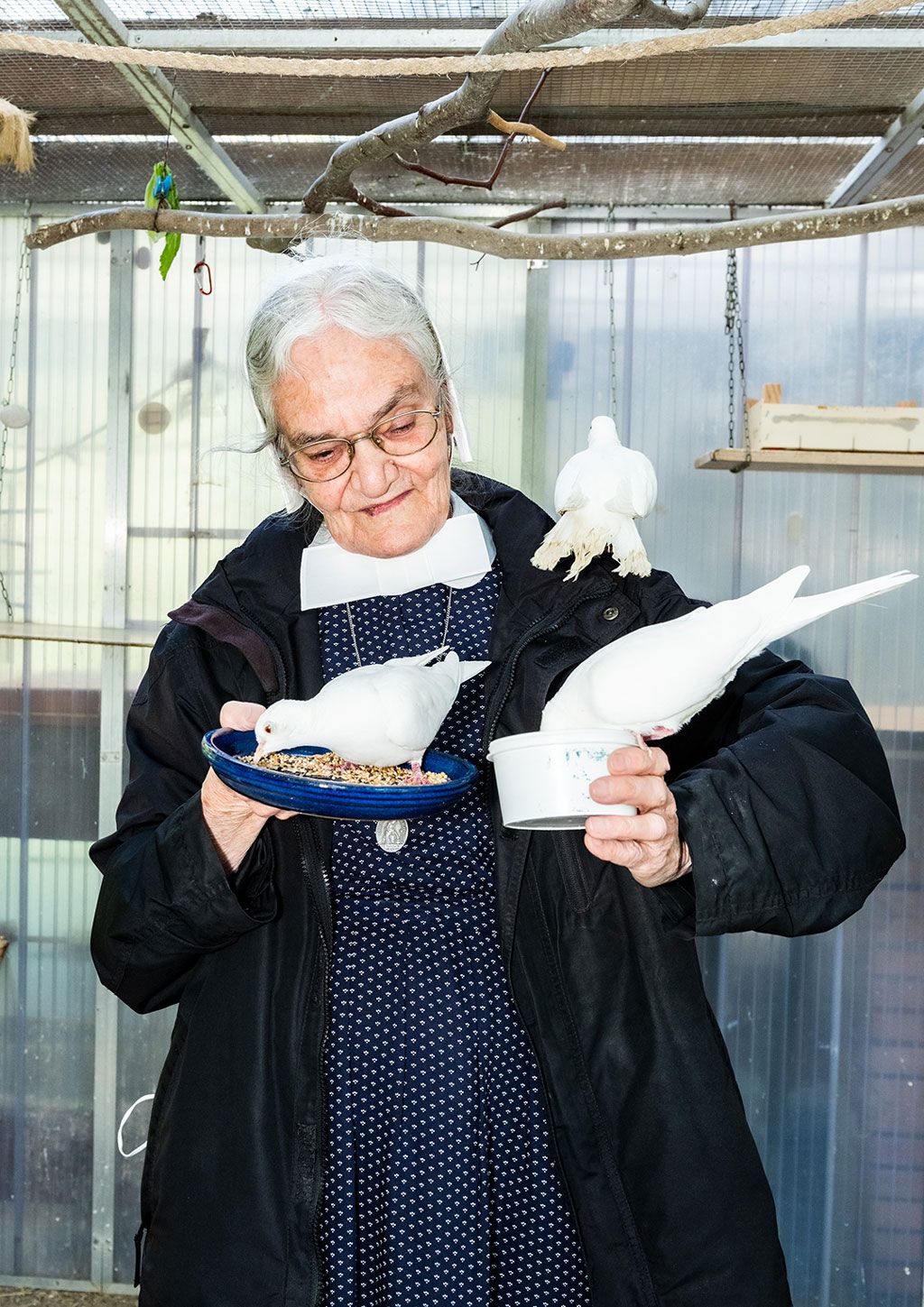 Schön, pensioniert zu sein. Seither hat Schwester Therese jeden Tag Zeit, in der Voliere des Hauses Oranienburg die Vögel zu hätscheln.