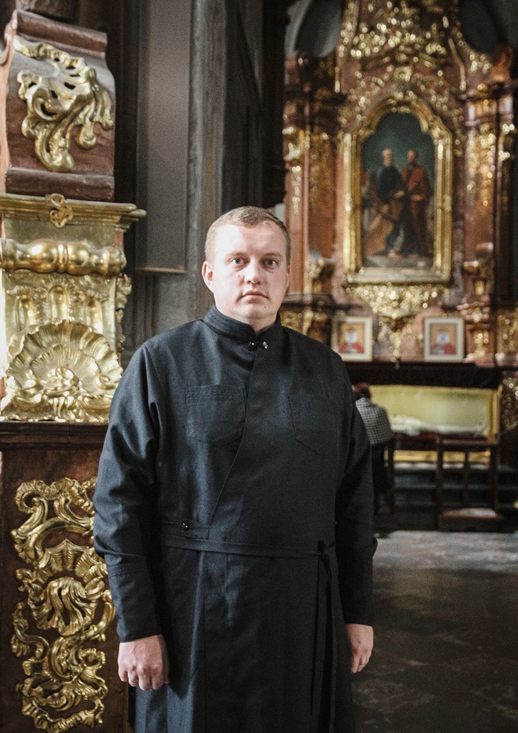 Mit 27 Jahren ist Nestor Ryzyk der Jüngste. Seit 2020 arbeitet er in der Garnisonkirche St. Peter und Paul. Einst eine Jesuitenkirche, gehört der 400 Jahre alte Barockbau heute zum Zentrum für Militärseelsorge. Seit 2008 hat die ukrainische griechisch-katholische Kirche die Hoheit, die grösste Glaubensgemeinschaft im Westen der Ukraine. Oberhaupt ist der Papst, die Traditionen dagegen sind eher orthodox.