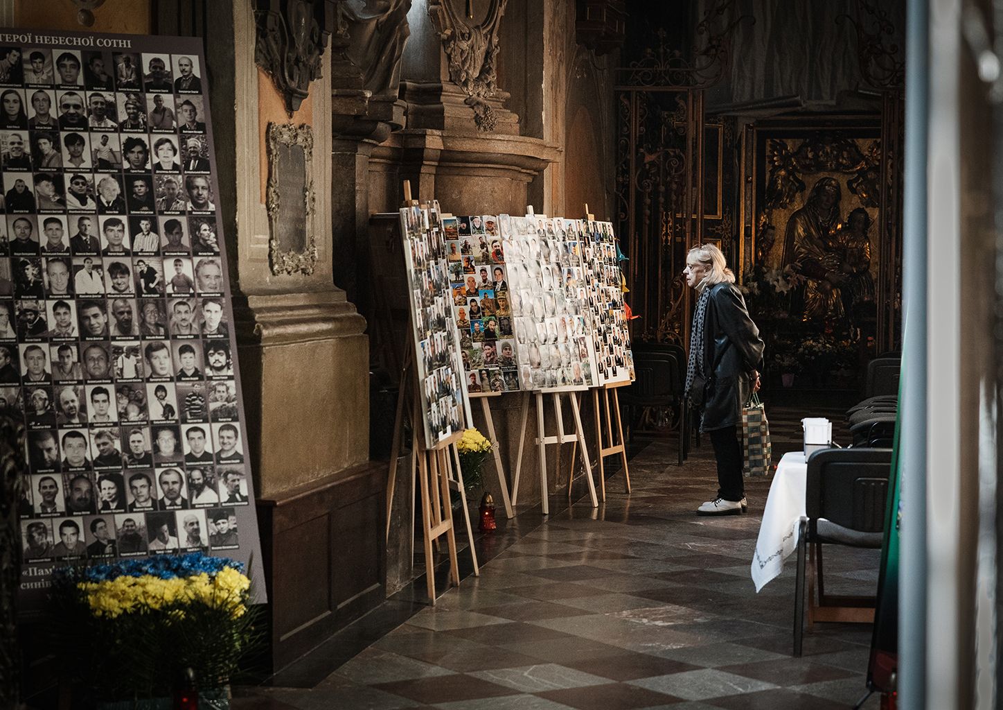 Fotos in der Kirche St. Peter und Paul erinnern an die toten Soldaten aus Lwiw. Wie viele es sind, dazu gibt es keine offiziellen Zahlen.
