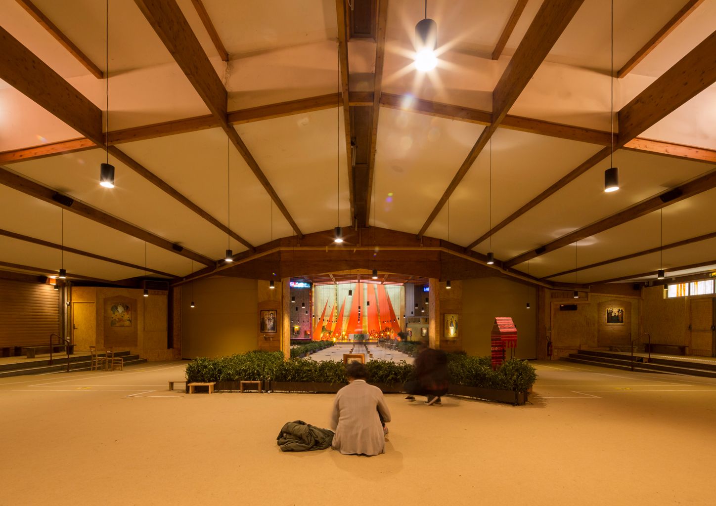 Trotz warmem Licht: Das Gebetshaus in Taizé hat den Charme einer in die Jahre gekommenen Messehalle.