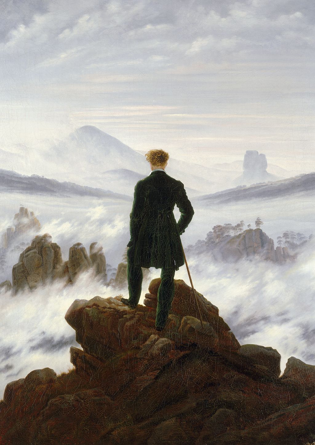 In unserer digitalen Medienwelt erscheinen Friedrichs Rückenfiguren als eine ernsthaft-besinnliche Alternative zu den allgegenwärtigen Selfies. Auch die Millionen von Gesichtern, die lächelnd vor klaffenden Abgründen posieren, sind eine Form der selbstreflexiven Naturbetrachtung, in der sich das Subjekt zugleich zum Objekt macht und mit ins Bild rückt. Sie sind nur eine Drehung vom «Wanderer über dem Nebelmeer» entfernt. Doch diese Drehung um 180 Grad ist entscheidend.