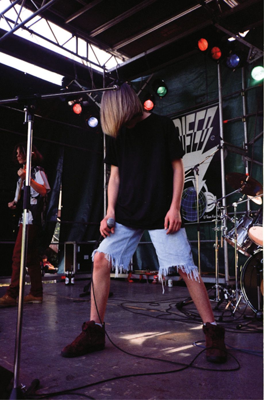 Jörg Scheller steht mit etwa vierzehn Jahren als Frontsänger auf der Bühne. Damals konnten die Haare nicht genug schnell wachsen.