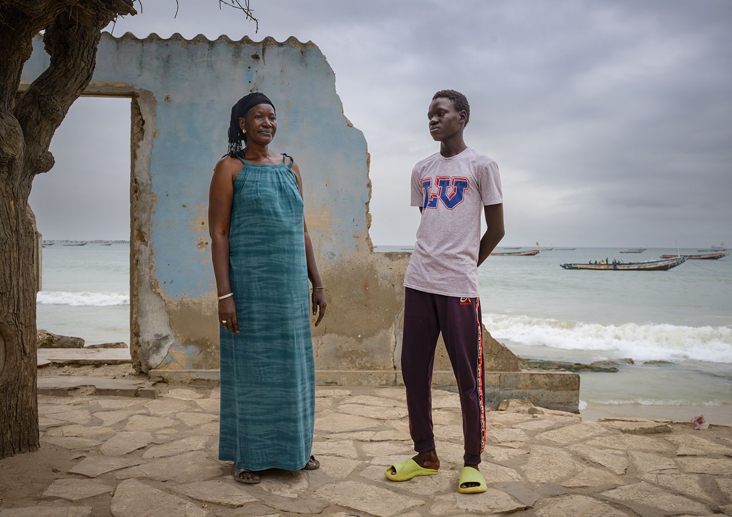 Wir stehen in den Ruinen ihres Hauses. Das ehemalige Schlafzimmer ist zerstört; der Rest des Hauses, das sie von ihrem Vater geerbt hat, steht noch. Stolz erzählt Magiette Gueye, dass nun auch ihr zweiter Sohn auf den Kanarischen Inseln sei und dort vielleicht in ein Nachwuchs-Basketballteam aufgenommen werde.
