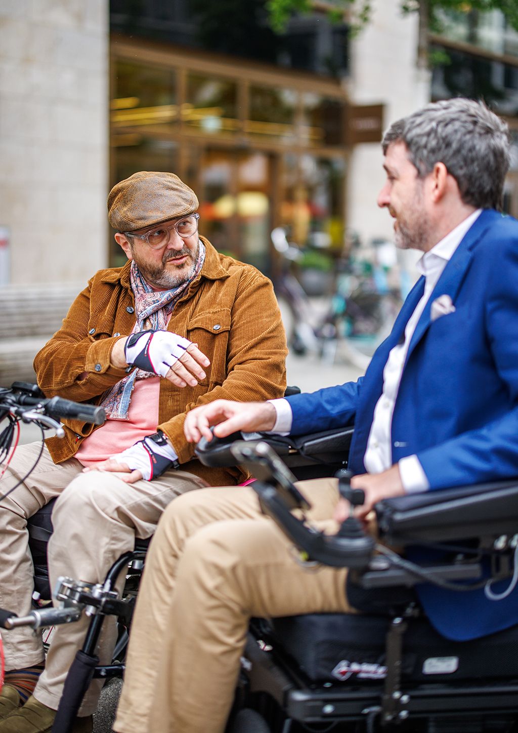 Kutter: Wir können dann gerne auch die Handynummern austauschen (blickt auf sein Mobiltelefon, das an seinem Rollstuhl befestigt ist). Oh, ich muss los, damit ich meinen Zug erwische.