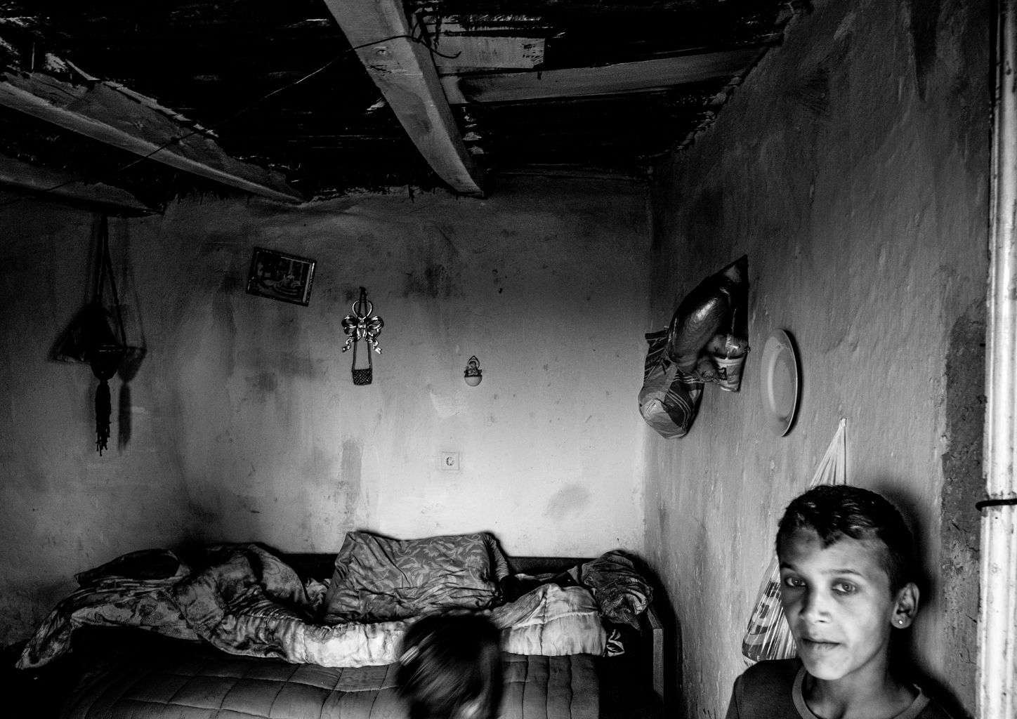 Im einen, dem länglichen Raum, ist die Küche mit Herd und Tisch und mit einem Jesusbild an der orangen Wand. Der andere Raum, drei auf vier Meter, ist das Schlafzimmer. Darin schläft die Familie Ilić Schulter an Bein. Hier überleben Menschen im Verborgenen.