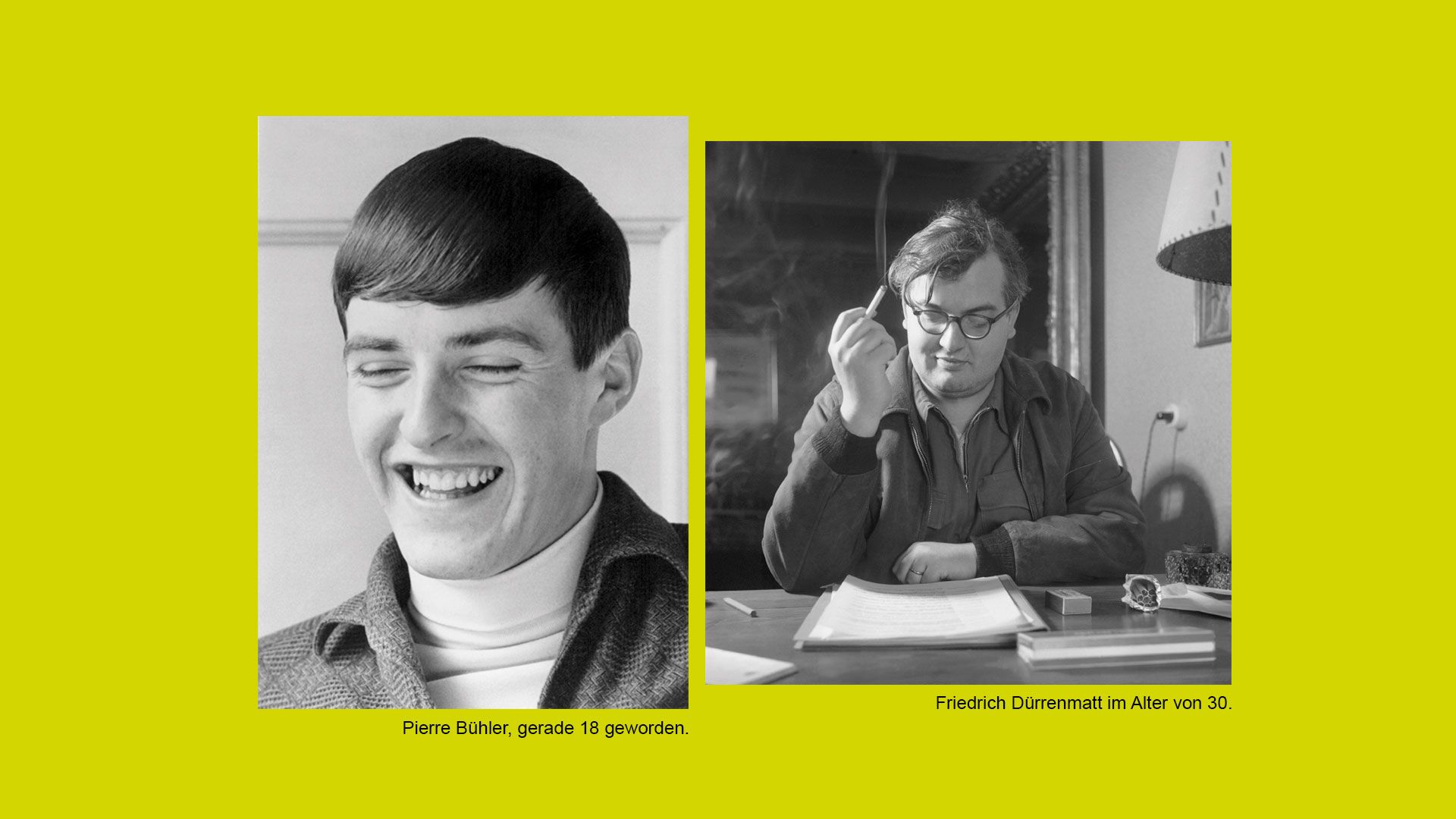 Pierre Bühler mit 18 und Friedrich Dürrenmatt im Alter von 30 Jahren: Bild: Keystone/Photopress-Archiv und ZvG/Privatarchiv