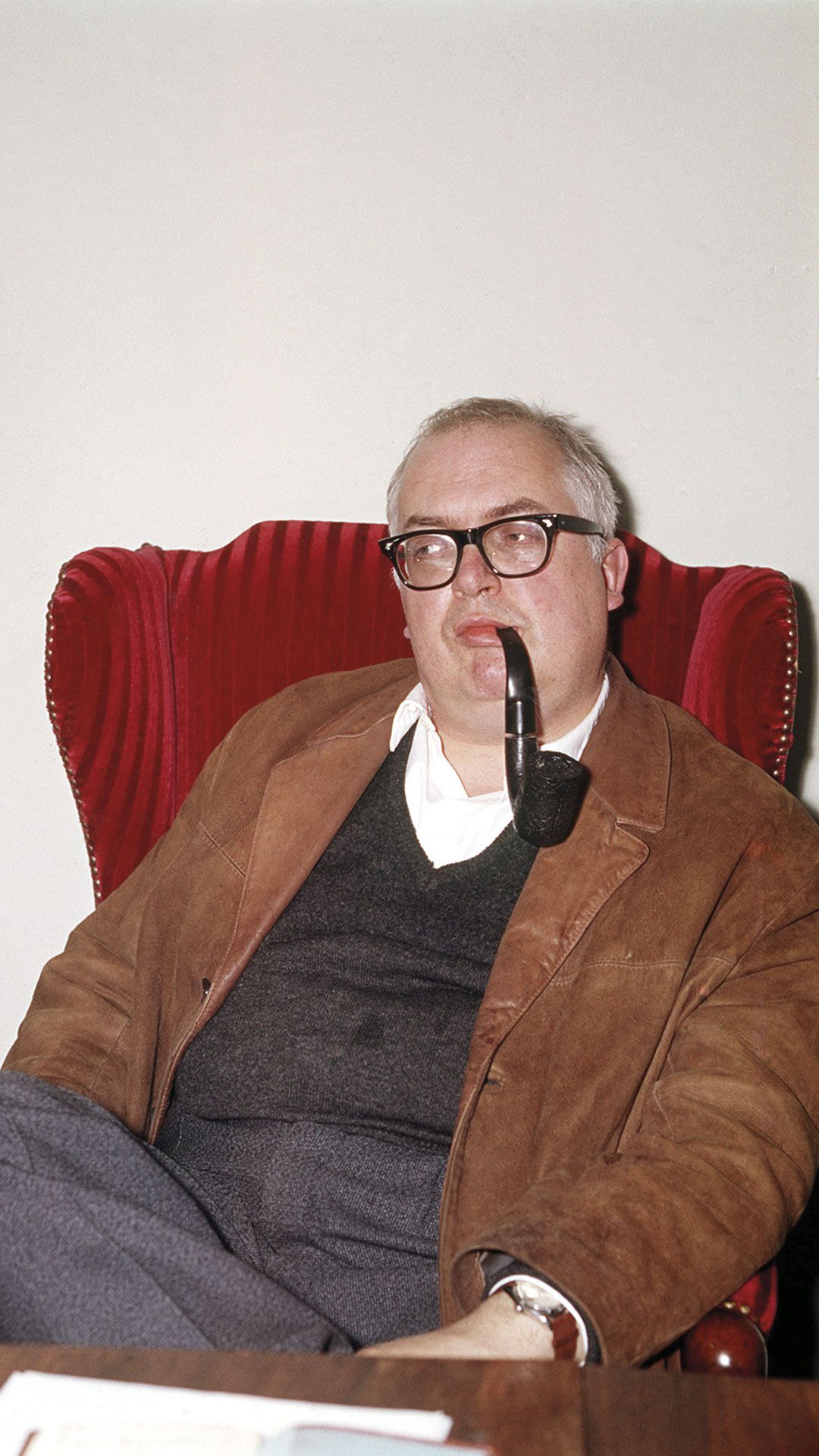 Nie ohne Pfeife: Schriftsteller Dürrenmatt hinter seinem Schreibtisch, undatierte Aufnahme.