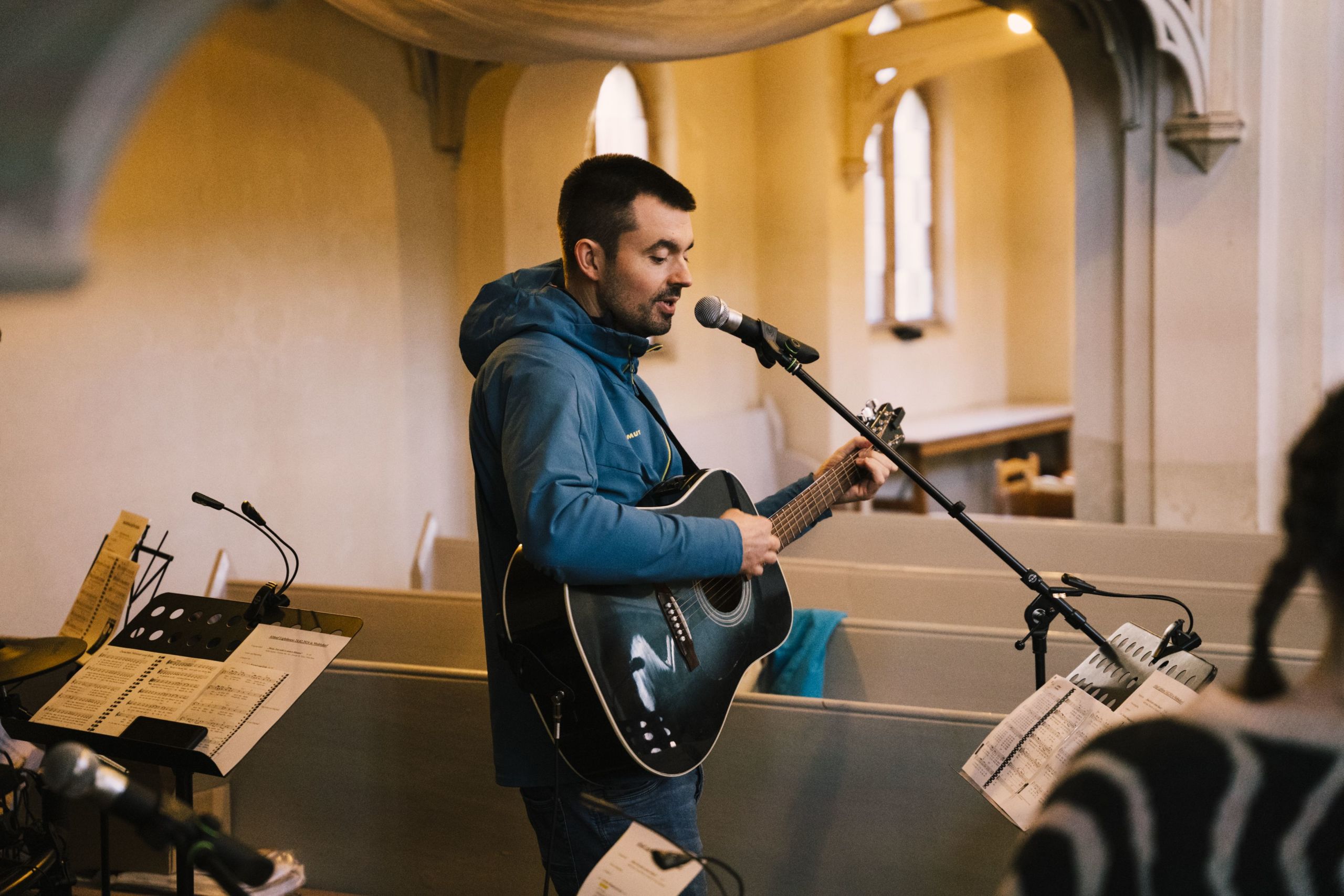 «Nur die toten Fische schwimmen immer mit dem Strom», singt Christian Mende in einer Probe vor dem Jugendgottesdienst.