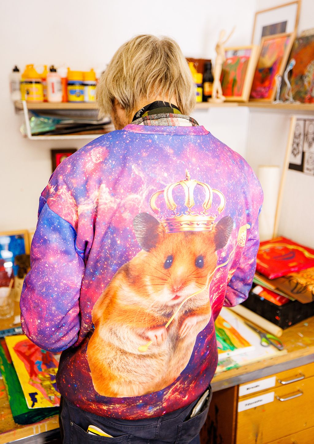 Ein Künstler und eine Künstlerin sind an diesem Tag da. An einem Arbeitstisch steht Michi, ein Mann mit grauen, schulterlangen Haaren, Stoppelbart und einem Pullover, auf dem eine Maus mit Krone im Weltall schwebt. Als Rass zu ihm geht, zeigt er ihr Steine, die er gesammelt hat und die er hier im Atelier farbig bemalen will. «Schau, die Linien sehen aus wie Schlangen», sagt er, während er mit seinem Zeigefinger an einem noch unbehandelten Stein entlangfährt. Er ist sich sicher, dass so etwas Geheimnisvolles nicht durch natürliche Vorgänge entstanden sein kann. «Das haben unsere Vorfahren gemacht, glaubst du nicht?»