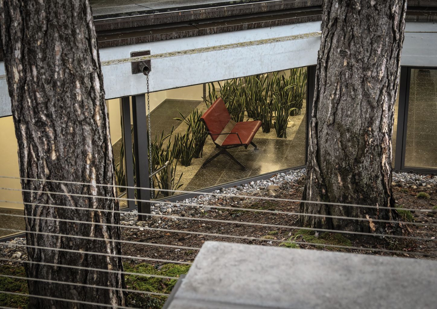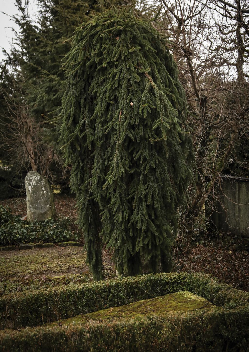 Das Betreten des Friedhofs macht etwas mit mir. Ich gehe langsamer. Es gibt nichts Bestimmtes, was ich hier suche, und doch finden sich meine Gedanken ein. So als ginge von diesem Ort eine Schwerkraft aus, die meine Wahrnehmung an seine Gegebenheiten heftet. Ich schlendre die geraden, geometrischen Alleen entlang, passiere die in Rastern angelegten Grabfelder und Urnenflächen. In einiger Distanz bewegt sich eine Frau im grauen Mantel entlang der Längsachse der Anlage. In der Hand trägt sie ein Blumengebinde. Später sehe ich, wie sie, in sich gekehrt, vor einem kleinen Grab am anderen Ende des Friedhofs stehengeblieben ist. Ihr Blick geht über dem Bett von immergrünen Nadelzweigen zu ihren Füssen ins Leere.
