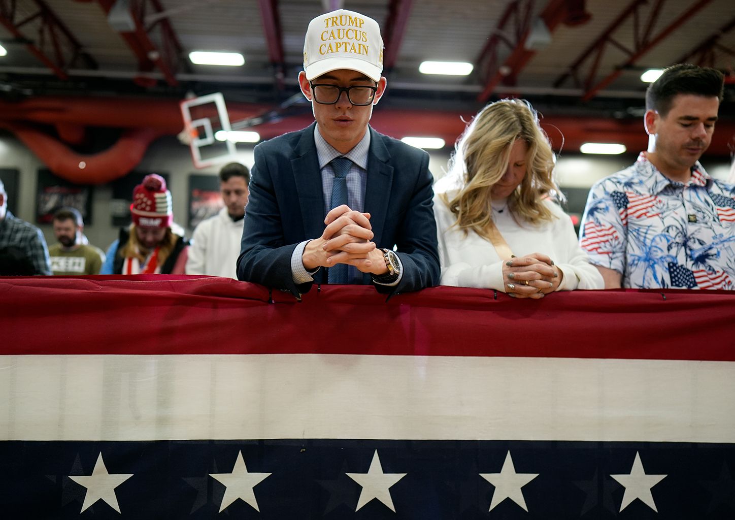 Trump-Anhänger beten vor einer Wahlveranstaltung im Bundesstaat Iowa. (Bild: Keystone/ AP Photo / Charlie Neibergall)