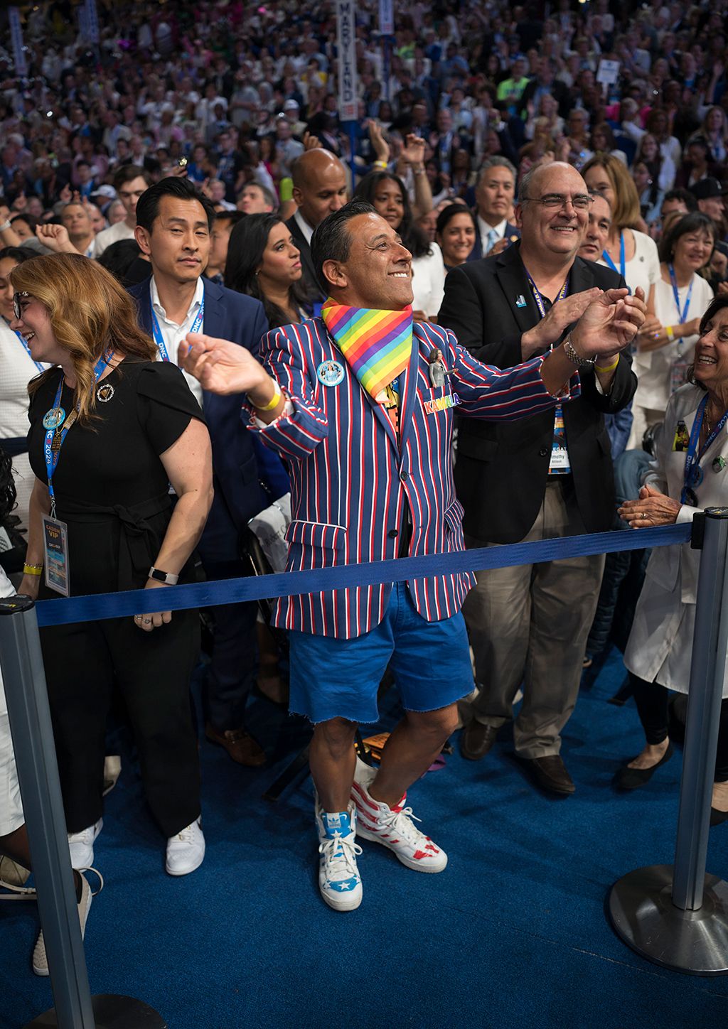 Tanzende Besucher am Nominierungsparteitag für Kamala Harris und Tim Walz in Chicago. (Bild: Keystone / Laif / Joerg Glaescher)