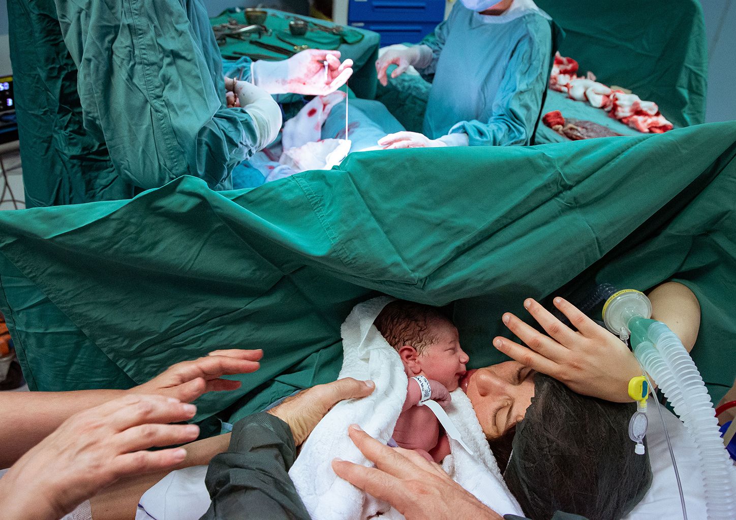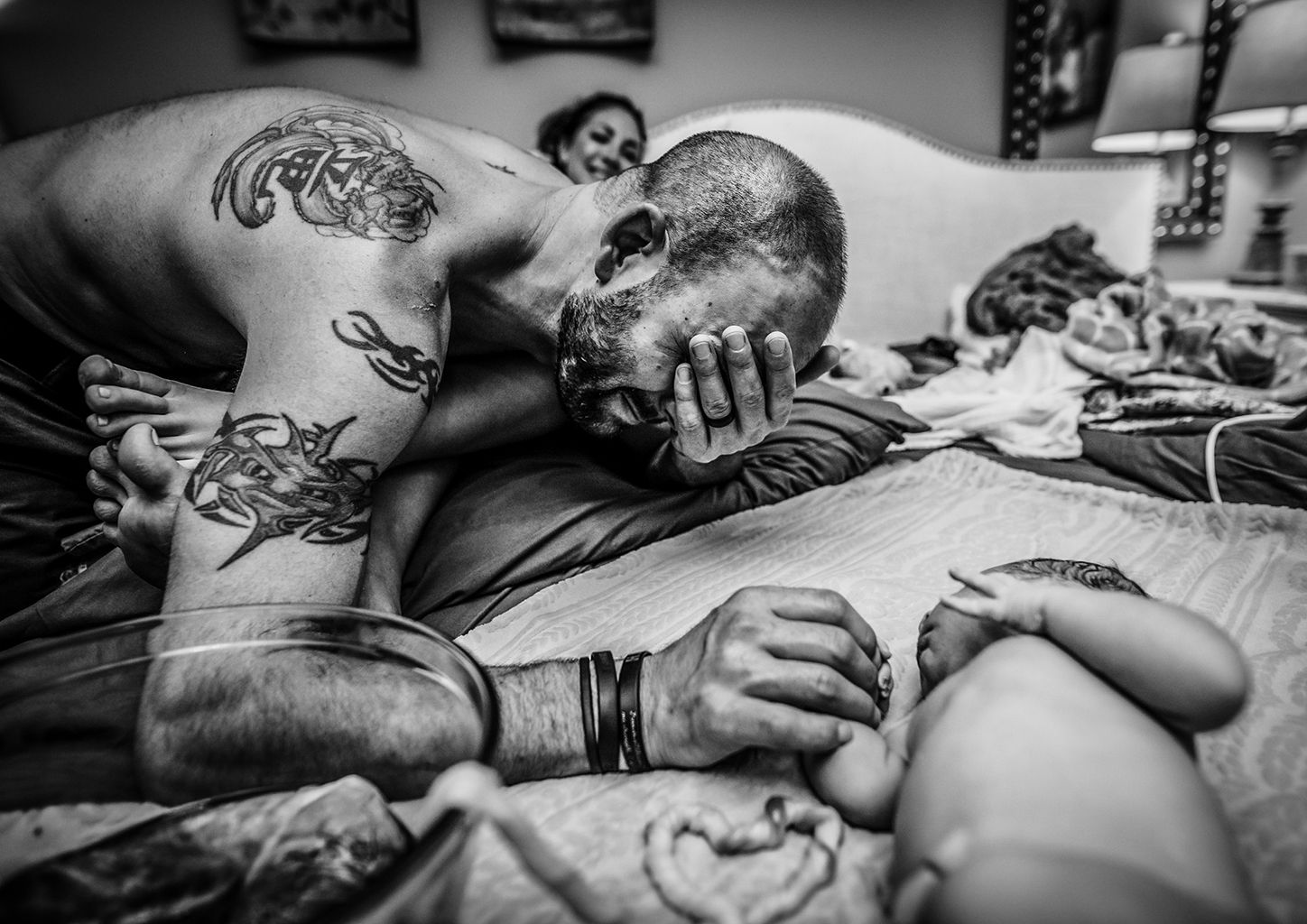 Die Mutter erschöpft, aber glücklich, das Baby wohlauf, der Vater überwältigt von seinen Gefühlen. Dieses Mal ist alles gutgegangen. (Sara Hunter, sarahunter.smugmug.com)