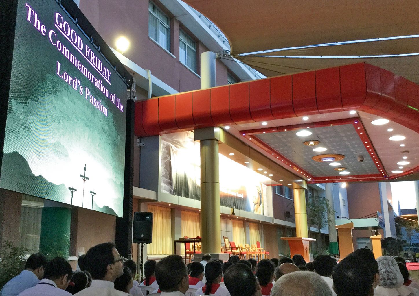 Von den Mühen des täglichen Lebens ist über die Osterfeiertage auf dem Areal zwischen St. Joseph’s Cathedral und St. Therese Church wenig zu spüren. Die Stimmung auf dem Platz ist festlich, der Umgangston herzlich. Man kennt sich, man trifft sich und tauscht sich aus. Man ist endlich einmal wieder unter seinesgleichen und fühlt sich respektiert. Dass an diesem Karfreitagabend der Gebetsruf des Muezzins von der nahegelegenen Moschee mitten hinein in die Lesung vom Leiden des Gottesknechtes (Jesaja 52,13–53,12) platzt, scheint hier, ausser den Besuchern aus der Schweiz, niemanden sonderlich zu irritieren. Man hat sich an die Allgegenwart des Islams gewöhnt und hält dagegen, indem man die Stimme erhebt oder lauter singt.