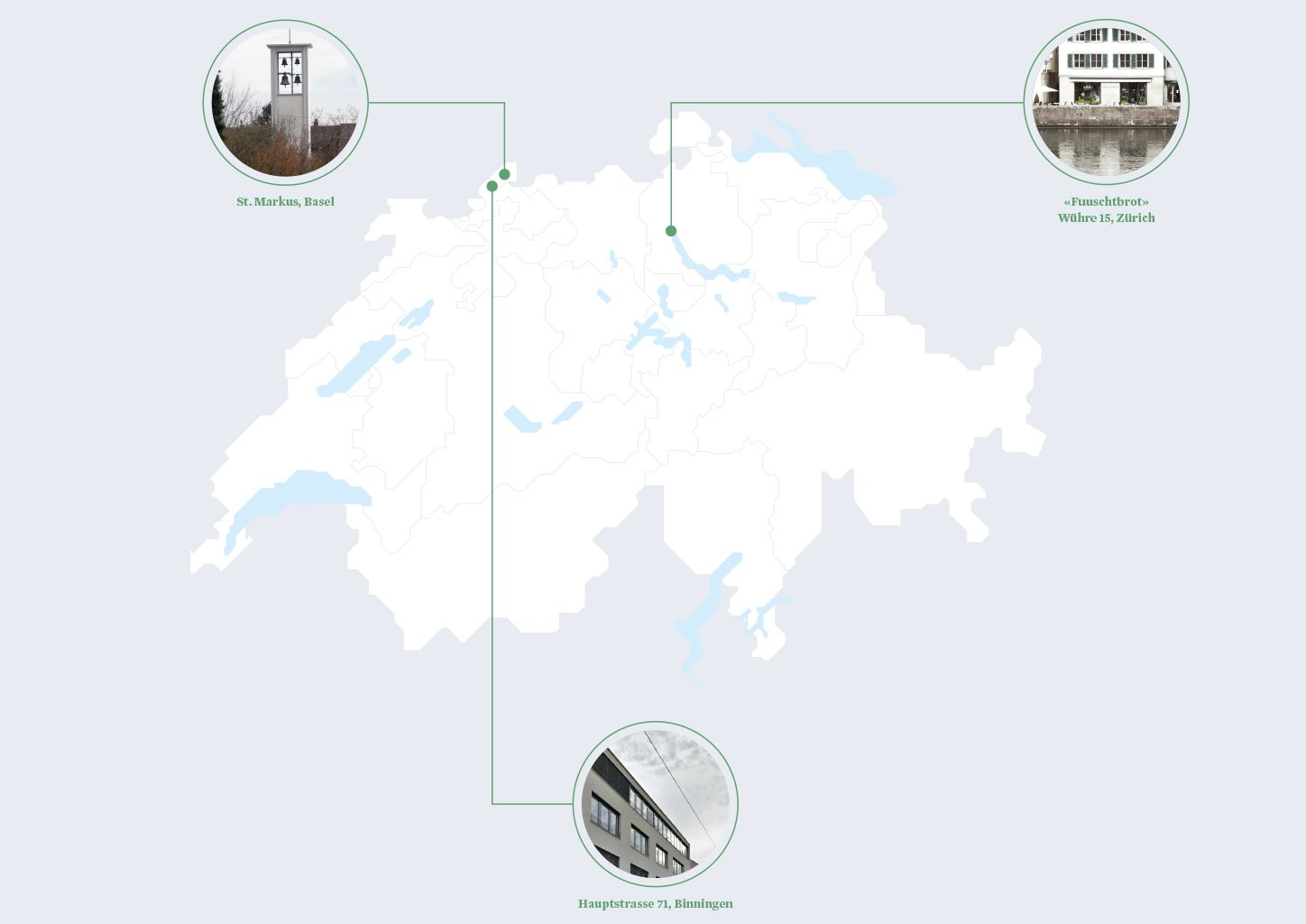 Die Schauplätze: Wühre 15 in Zürich, Kirche St. Markus in Basel Hirzbrunnen, ein Supermarkt in Binningen.