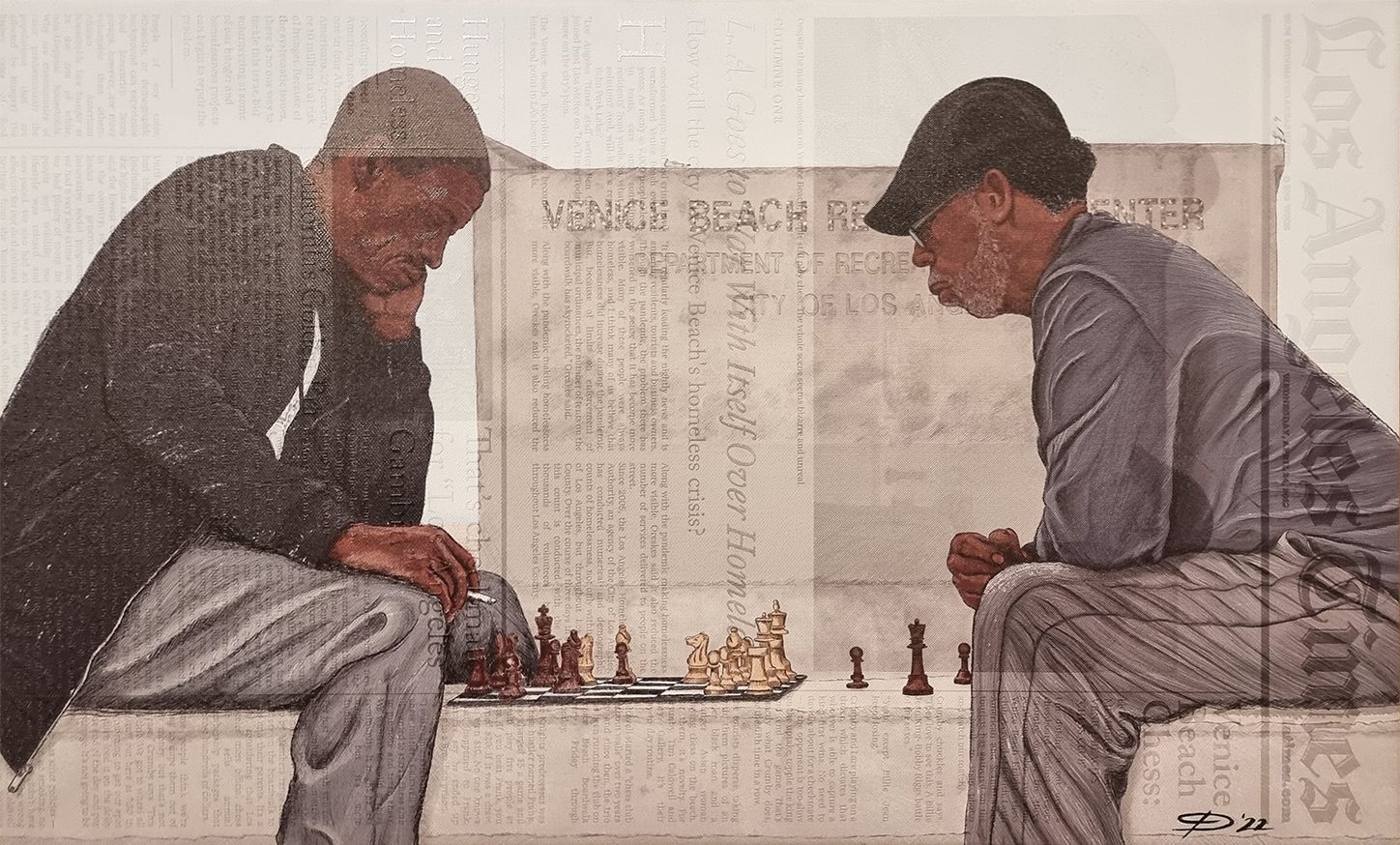 Er recherchierte, dass der «Venice Beach Knights Chess Club» Schachspielern, darunter Randständigen und Obdachlosen, die Möglichkeit bietet, tageweise Schach zu spielen. Für fünf Dollar ist man Tagesmitglied, für zwanzig Dollar lassen sich Mitgliedschaften spenden. Während der Pandemie hatte sich die desolate Situation der Obdachlosen in Los Angeles weiter verschärft, und der Venice Beach war einer der Orte, wo die Welt der Randständigen mit dem Glamour der Grossstadt zusammentraf – unter anderem beim Schachspiel.