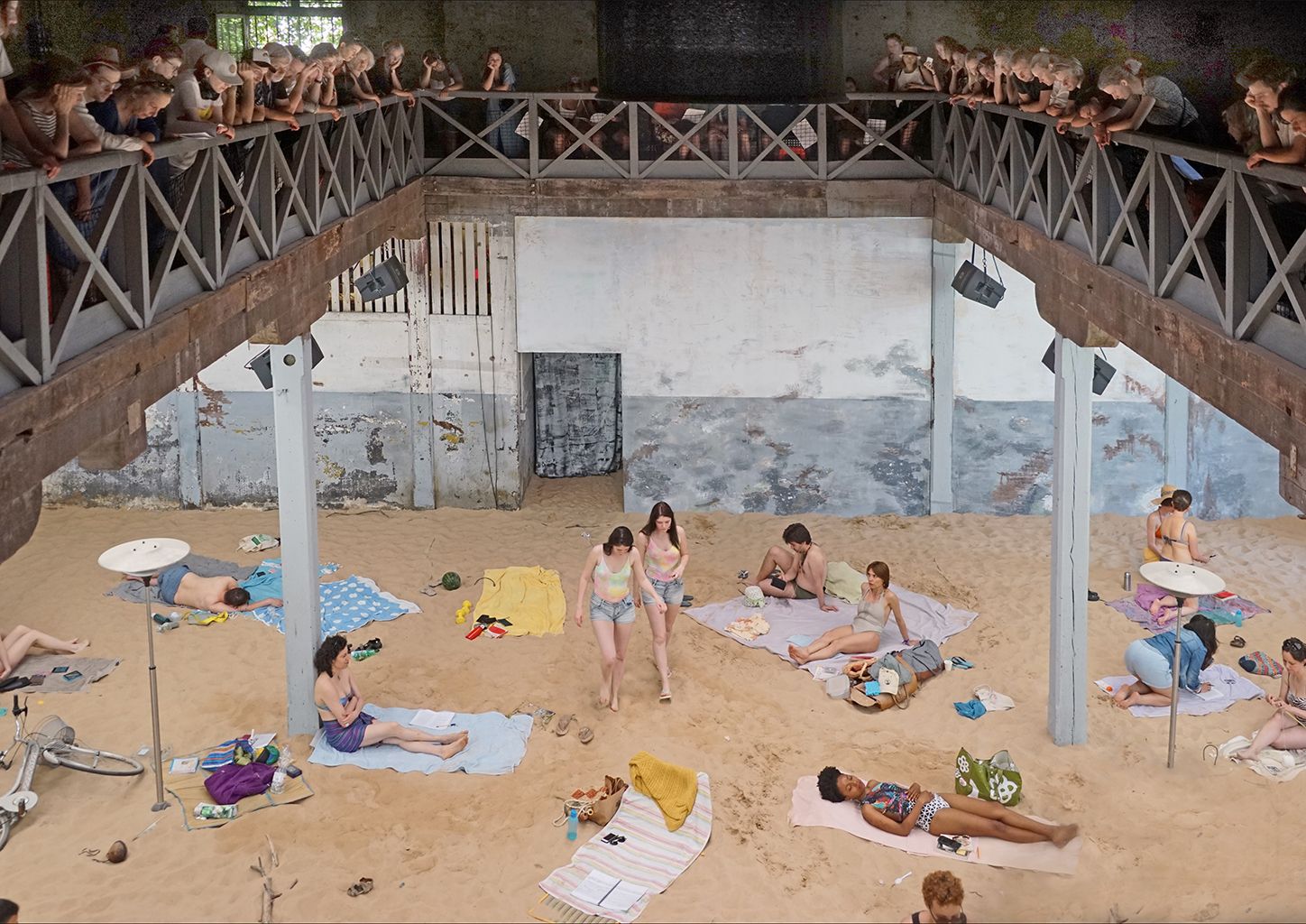 Zu sehen waren Menschen an einem künstlichen Strand, Zuschauerinnen, Betrachter, Konsumentinnen, Anbeter der Sonne und des Meeres, die scheinbar planlos und profan, aber doch in einer präzisen Choreografie stehend, kniend, sitzend, laufend, liegend, singend, spielend vom Pavillon Besitz ergreifen. Und je länger man diesem banalen Beach-Life zusieht, umso mehr stellt sich ein Leerlauf ein, mit dem sich der Unterschied auflöst zwischen den Menschen am Strand, die sich entspannen, und uns, den Menschen auf der Galerie, die diese Performance betrachten. Egal ob Kunst-Gläubige oder Kunst-Ignoranten – am Ende sind wir alle Touristen, die lustvoll Zeit totschlagen und Müll anhäufen. Besonders in Venedig, aber nicht nur da. Auch das kann uns Kunst zeigen.