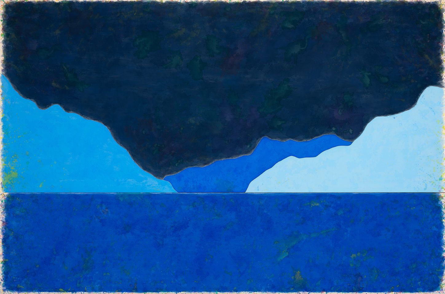 Fast könnte das zweite Gemälde als abstraktes Bild durchgehen, wäre da nicht die Erinnerung ans erste Gemälde, die auch das zweite im Figurativen verortet. Die eigenwillige Beschränkung auf fünf Blautöne macht aus den Sujets Kippbilder. Wie in den bekannten psychologischen Tests erleben wir, wie die Darstellung «kippt»: wie «Landschaft» sich aus den farbigen Flächen herauskristallisiert und auch wieder in die Abstraktion entschwindet.