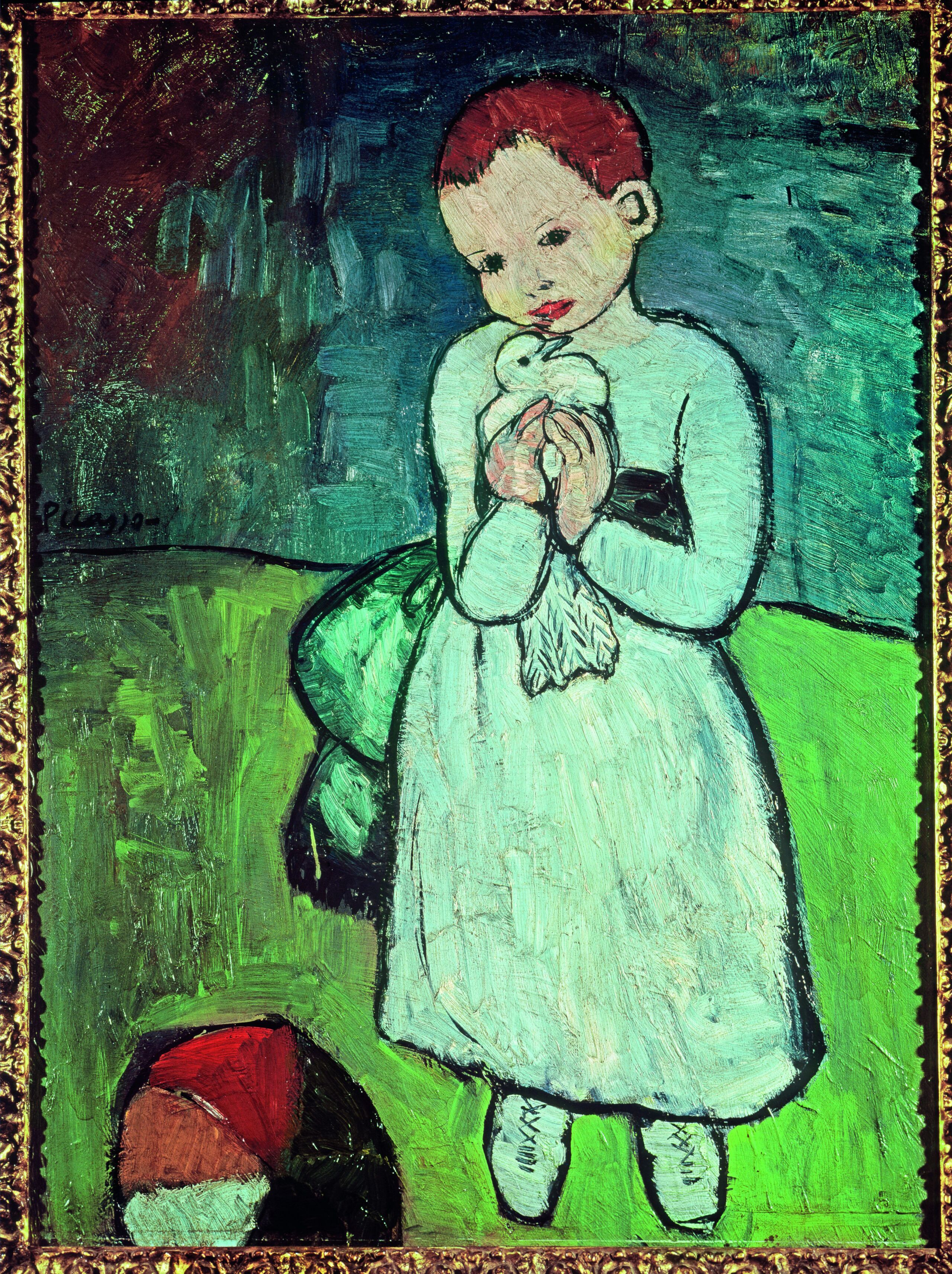 Das Bild Mädchen mit Taube ist 48 × 64,5 cm gross und markiert den Beginn von Picassos blauer Periode. Von 1974 bis 2011 war das Schlüsselwerk in der Londoner National Gallery zu sehen. Seit 2012 ist es im Besitz des Emirats Katar.